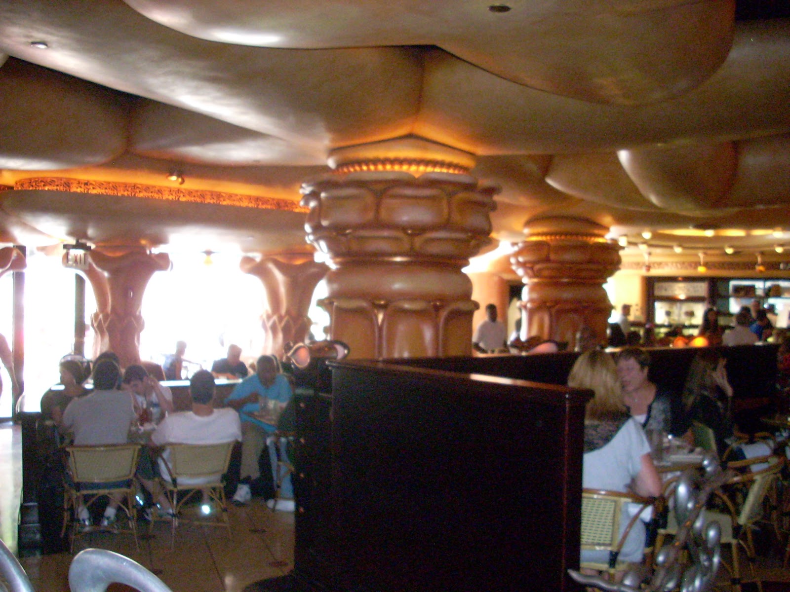 The decor is what I imagine it would look like if the Cirque du Soleil people opened a restaurant. Weird.
